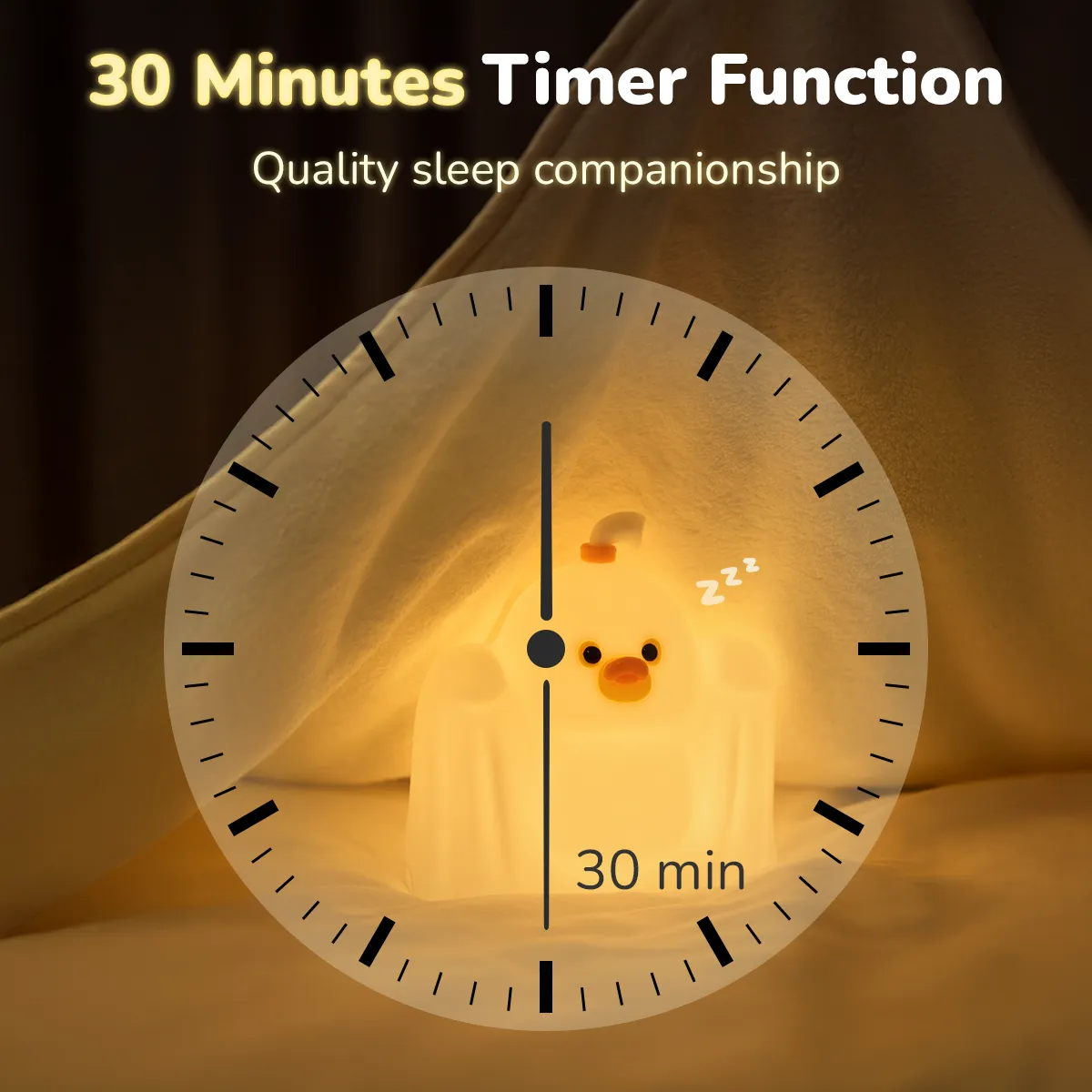 Hãy tưởng tượng cảm giác thư giãn khi nằm trên giường, chỉ cần vỗ tay một cái, ánh sáng đèn ngủ dịu nhẹ từ chú Vịt Ma dễ thương sẽ lan tỏa khắp căn phòng. Không cần phải mò mẫm công tắc, không sợ làm phiền người bên cạnh.
