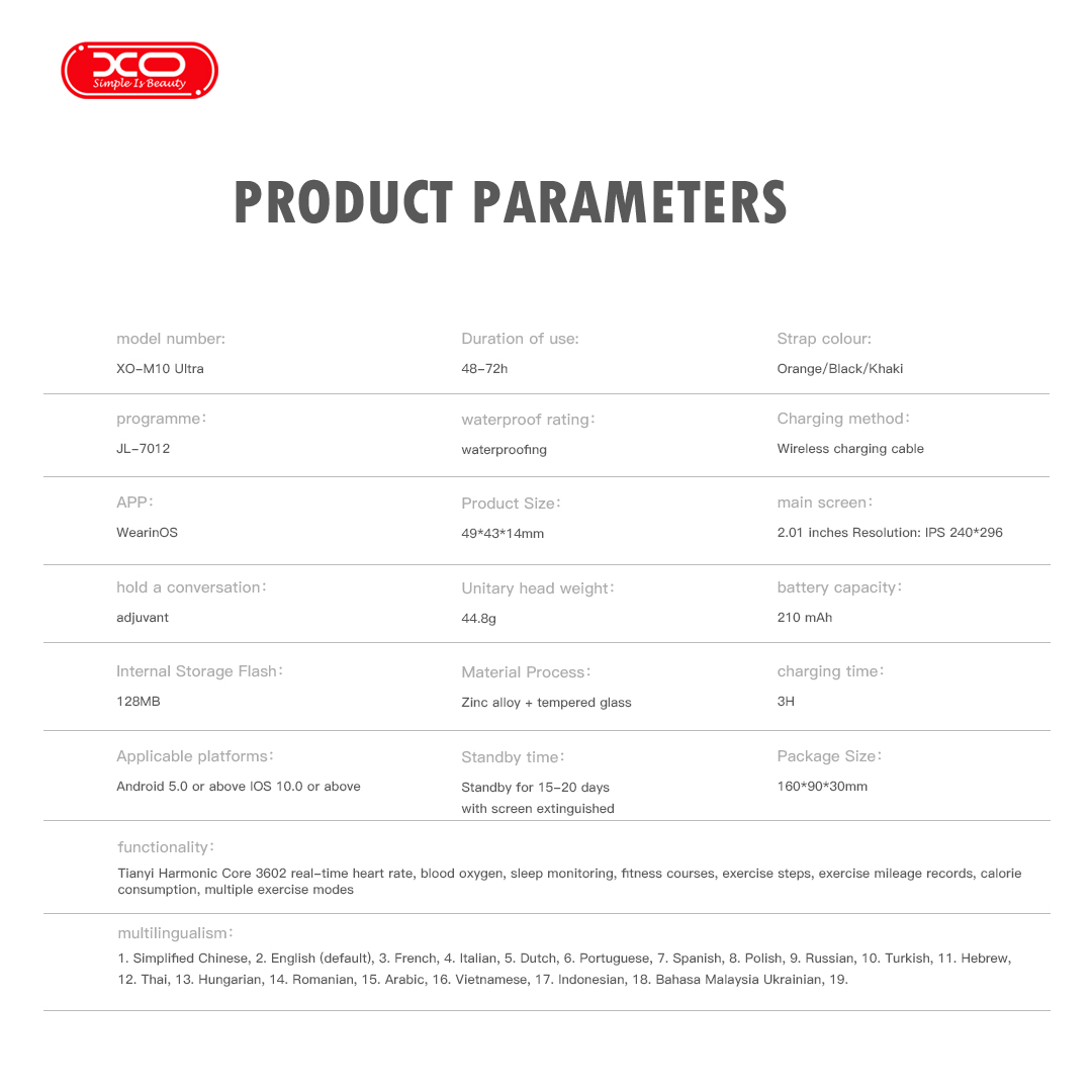Đừng để bản thân bị tụt lại phía sau! Nâng tầm phong cách sống và sức khỏe của bạn ngay hôm nay với Đồng Hồ Thể Thao Thông Minh XO M10Ultra. Đặt hàng ngay để sở hữu người bạn đồng hành đáng tin cậy này!
