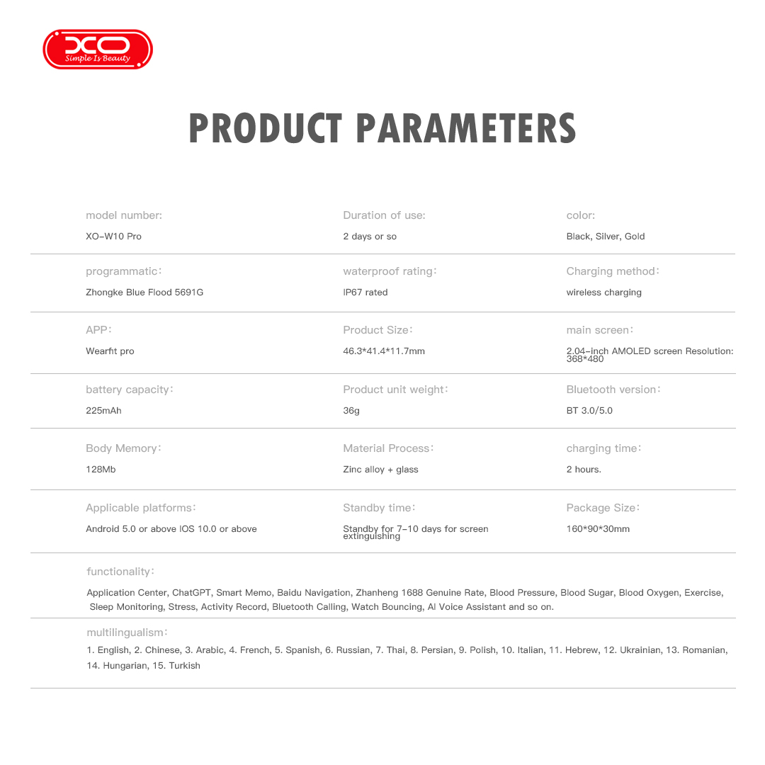 Đừng chỉ mơ về một cuộc sống thông minh. Hãy biến nó thành hiện thực với Đồng Hồ Thể Thao Thông Minh XO W10 Pro. Đặt hàng ngay để sở hữu người bạn đồng hành công nghệ đáng tin cậy này, làm chủ cuộc sống của bạn!