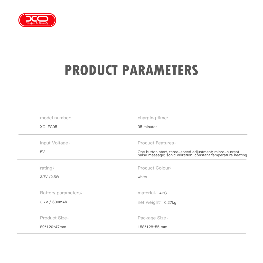 Sản phẩm XO FG05 được thiết kế để mang lại hiệu quả tối đa cho cả vùng cổ và mặt. Công nghệ massage xung điện giúp các dưỡng chất thẩm thấu sâu hơn vào da, tối ưu hóa hiệu quả của các sản phẩm chăm sóc da bạn đang dùng. Máy nâng cơ mạnh mẽ sẽ giúp bạn giảm rãnh cười và cải thiện tình trạng chảy xệ, đồng thời giúp trẻ hoá vùng mắt, mang lại đôi mắt rạng ngời. Dù là người bận rộn, chỉ cần dành vài phút mỗi ngày, bạn đã có thể sở hữu làn da căng mịn, tràn đầy sức sống.