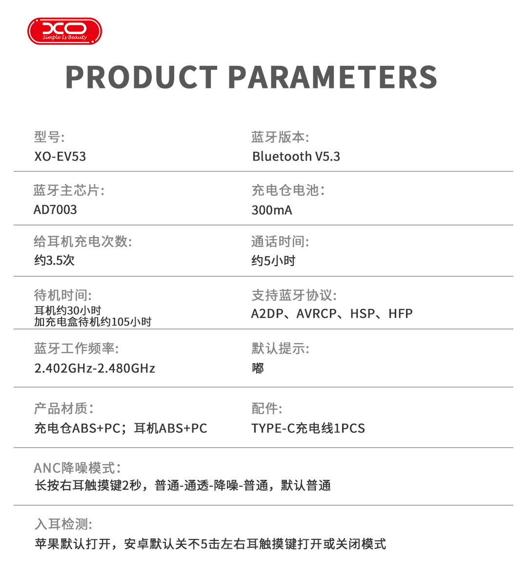 Tai Nghe Airpod XO EV53 - Tai Nghe Chống Ổn, Thiết Kế Nhỏ Gọn