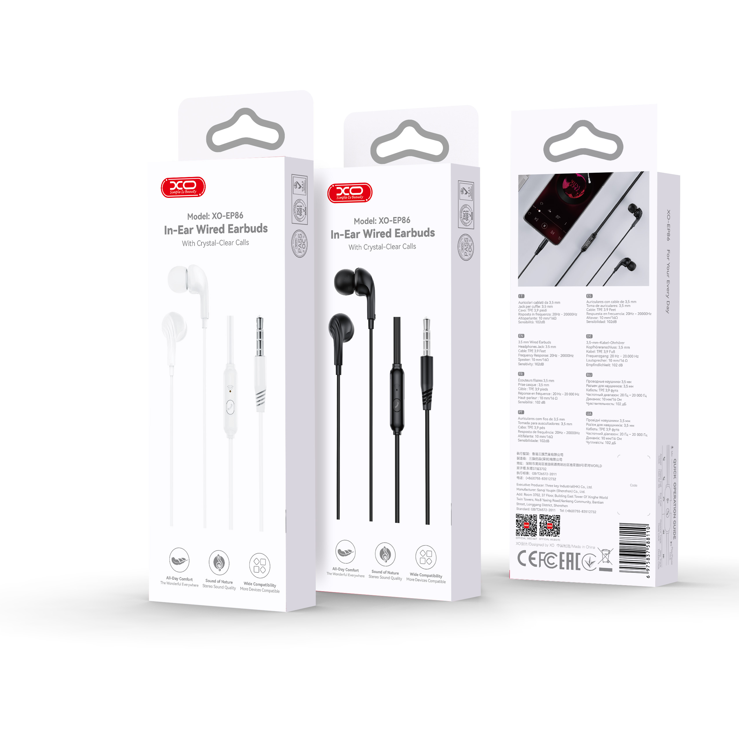 Sở hữu tai nghe jack 3.5 XO EP86 ngay hôm nay để tận hưởng chất lượng âm thanh đỉnh cao. Đây là dòng tai nghe có dây hỗ trợ đàm thoại rõ nét, tương thích hoàn hảo với mọi thiết bị có cổng cắm 3.5mm từ điện thoại, máy tính bảng đến laptop. Nếu bạn đang tìm kiếm một chiếc tai nghe chất lượng với mức giá hợp lý, XO EP86 chắc chắn sẽ không làm bạn thất vọng.
