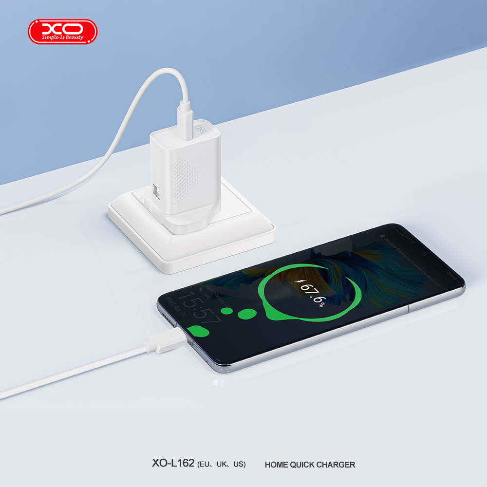 Bộ sạc nhanh XO L162 kèm cáp được thiết kế với phong cách tối giản chuẩn Châu Âu, màu trắng sang trọng và kích thước vô cùng nhỏ gọn. Bạn có thể dễ dàng mang theo trong túi xách, balo hay thậm chí là túi áo để sẵn sàng nạp năng lượng mọi lúc mọi nơi. Đây là lựa chọn sạc nhanh 30W cho Android và các dòng máy tính bảng, laptop mỏng nhẹ sử dụng cổng Type C hiện nay.