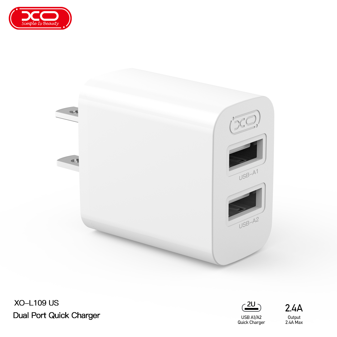Bộ Sạc XO L109 2.4A: Sạc nhanh với đầu ra 5V/2.4A, chất liệu ABS bền bỉ