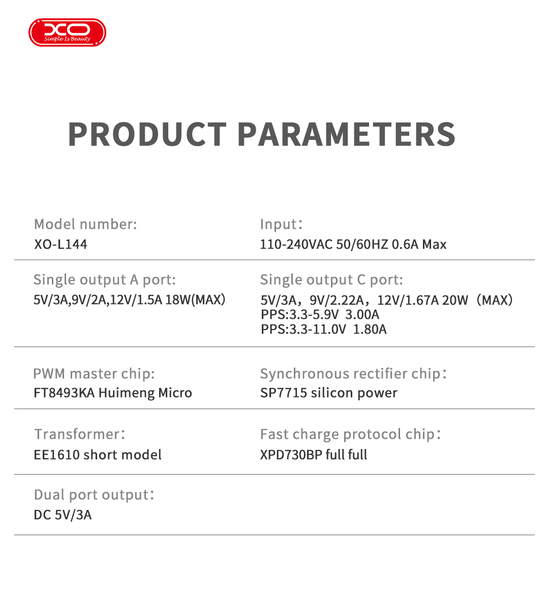 Không chỉ mang lại tốc độ, sản phẩm còn được làm từ vật liệu sạc chất lượng cao, bền bỉ và an toàn. Cam kết chất lượng như hàng nhập khẩu chính hãng, sản phẩm được bảo hành 12 tháng, giúp bạn hoàn toàn yên tâm khi sử dụng. Đặc biệt, với mức sạc giá rẻ nhưng hiệu quả vượt trội, XO L144 chính là lựa chọn kinh tế nhất cho mọi người.