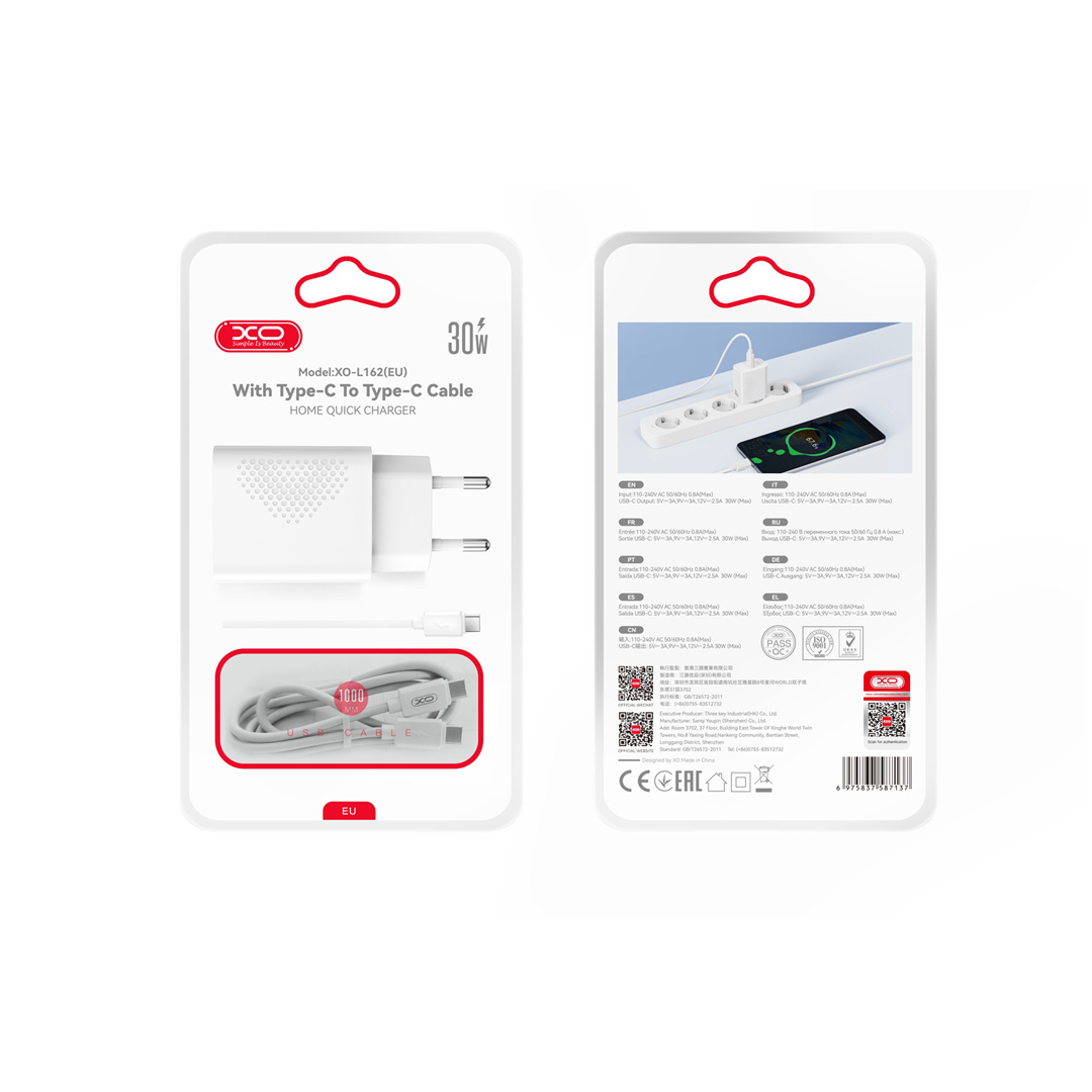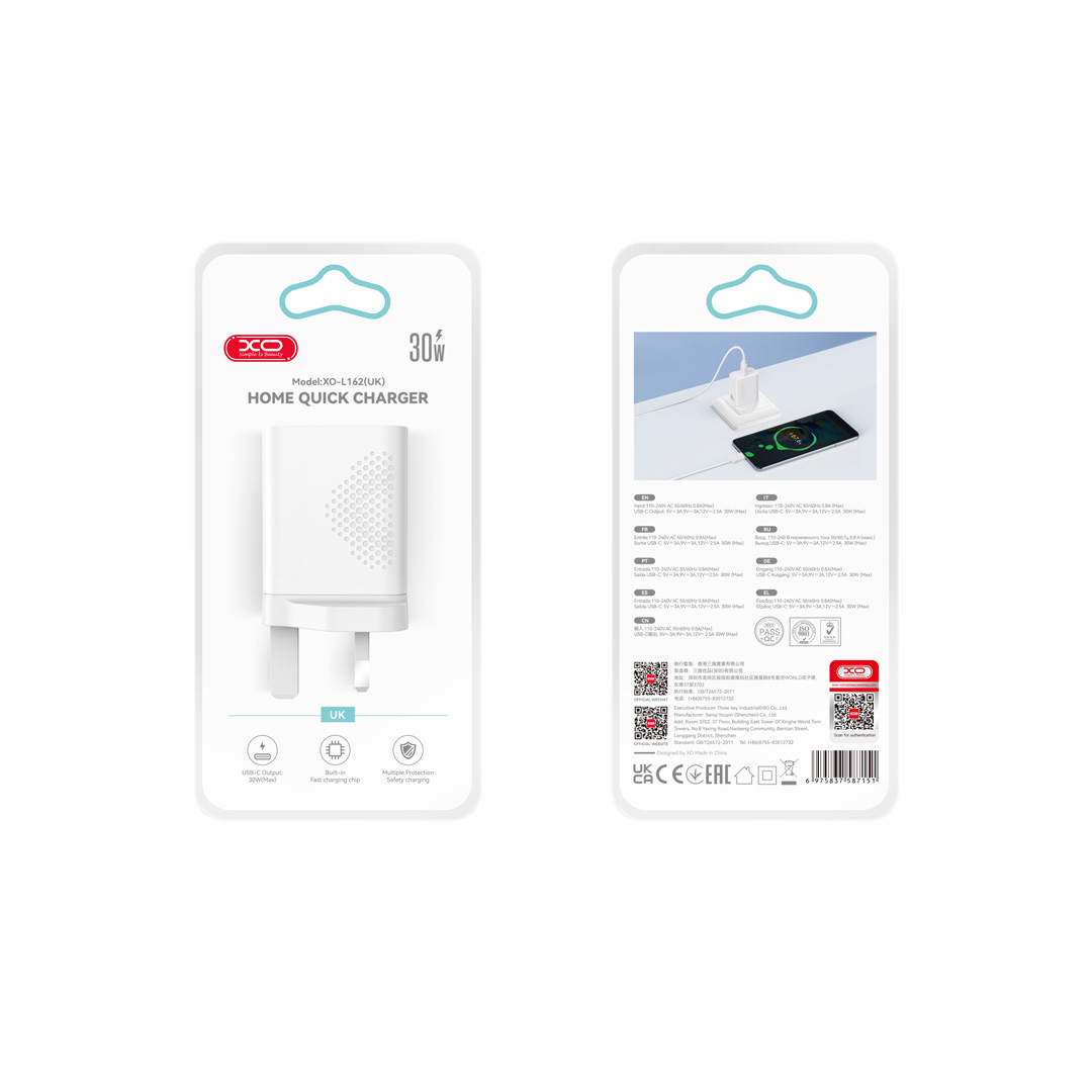 Tại sao bạn nên sử dụng sản phẩm này? Bởi vì thời gian là vàng bạc. Thay vì mất hàng giờ đồng hồ, Đầu sạc XO L162 30W sẽ giúp bạn lấy lại lượng pin đáng kể chỉ trong 30 phút ngắn ngủi. Chất liệu vỏ nhựa cao cấp chống cháy nổ cùng dải điện áp rộng từ 110V đến 240V cho phép bạn yên tâm sử dụng ở bất cứ quốc gia nào khi đi du lịch hay công tác.