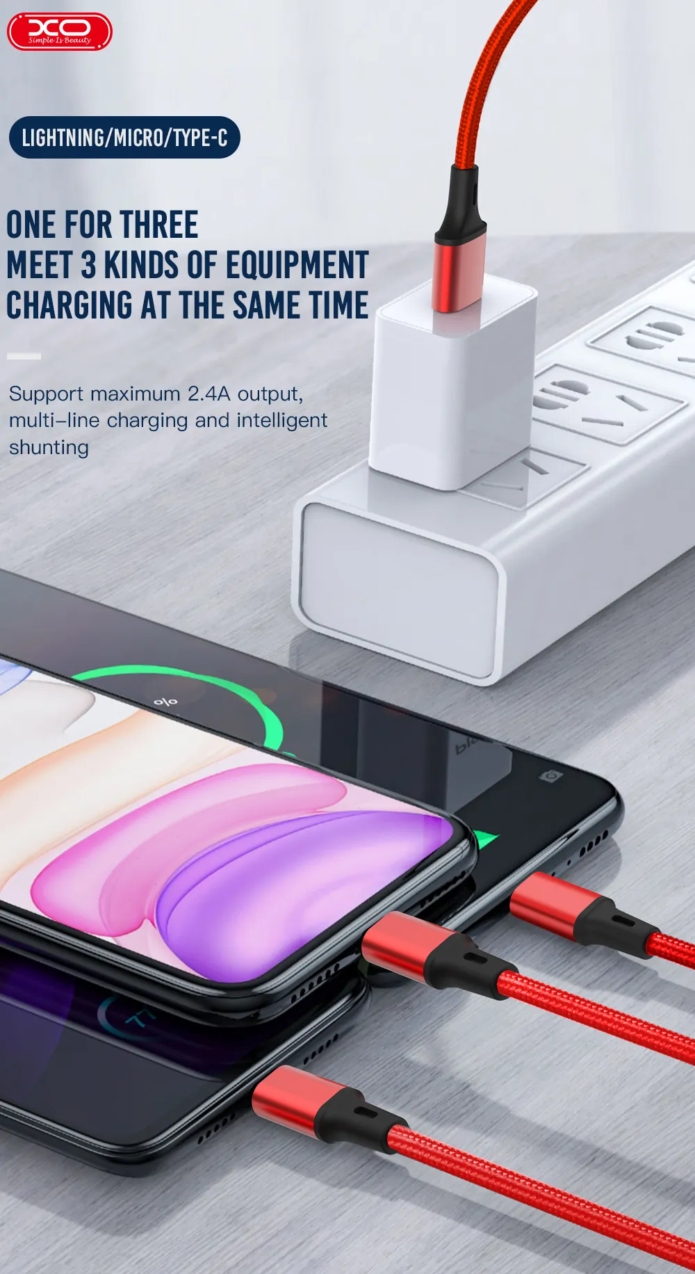 Dây sạc nhanh XO NB173 (USB to IOS/C/Micro) chính là sản phẩm hoàn hảo cho bạn. Thiết kế 3 trong 1 độc đáo giúp bạn giải quyết mọi vấn đề sạc pin chỉ với một sợi cáp duy nhất.