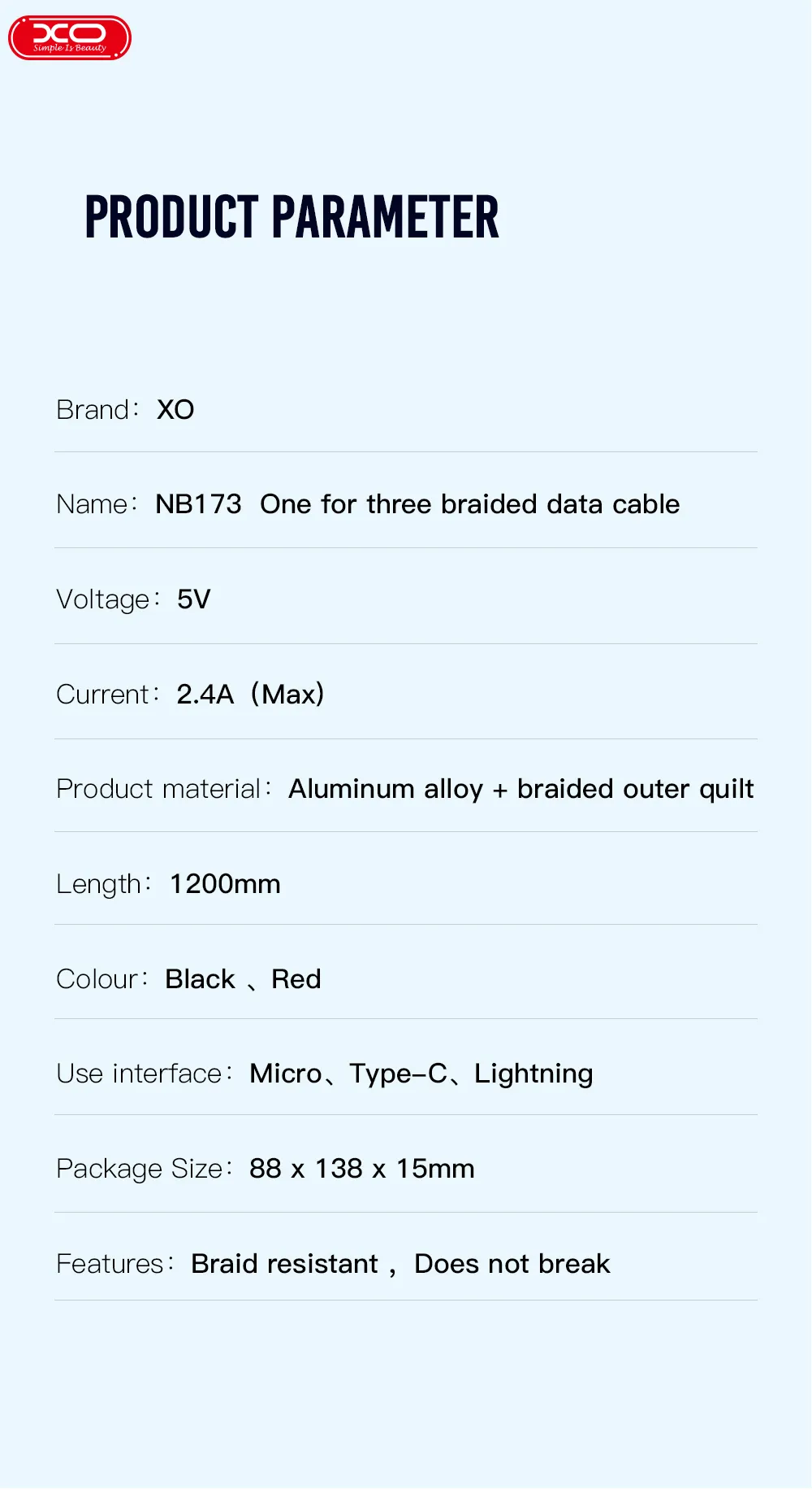Đừng chọn những loại cáp sạc giá rẻ có thể gây hại cho thiết bị của bạn. Hãy đầu tư vào một sản phẩm đáng tin cậy, an toàn và hiệu quả. Với dây sạc bền bỉ XO NB173, bạn sẽ luôn sẵn sàng cho mọi tình huống.