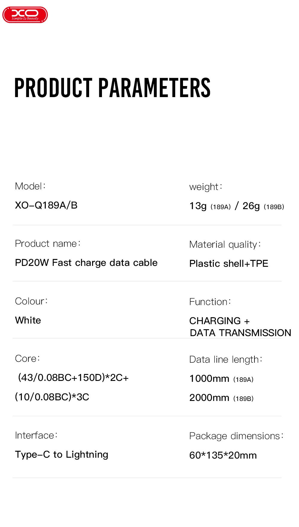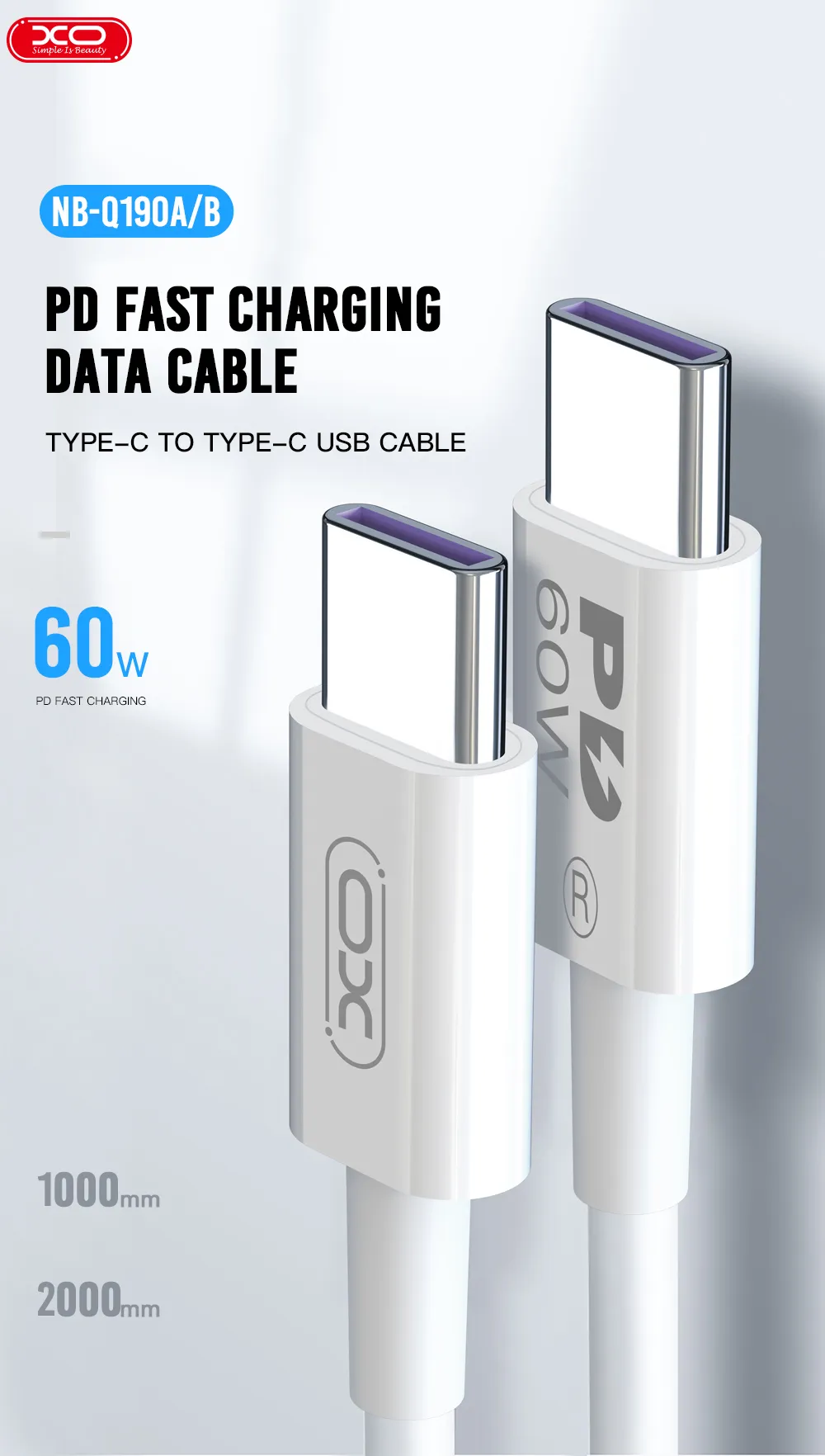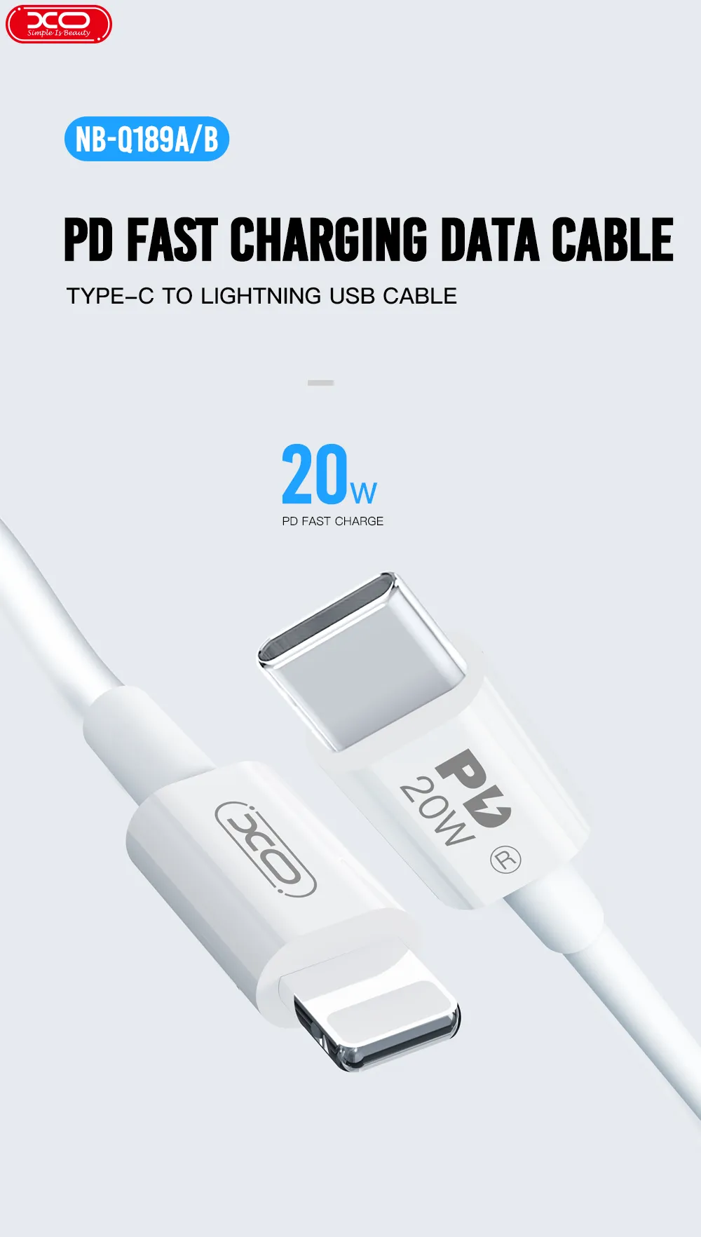 Dây sạc nhanh XO 2m NB Q189B 20W - Giải pháp cáp sạc PD tiện lợi, siêu bền.