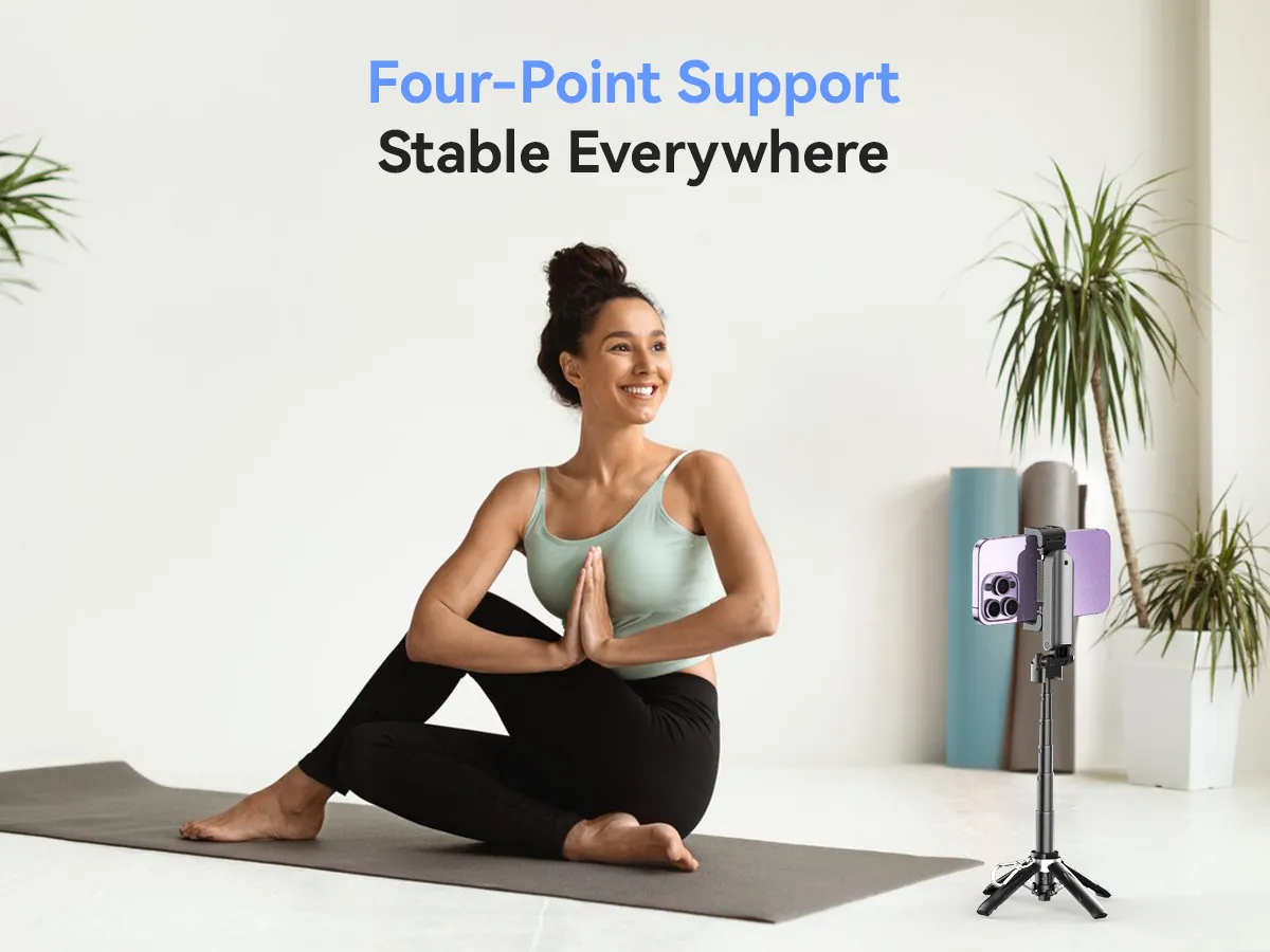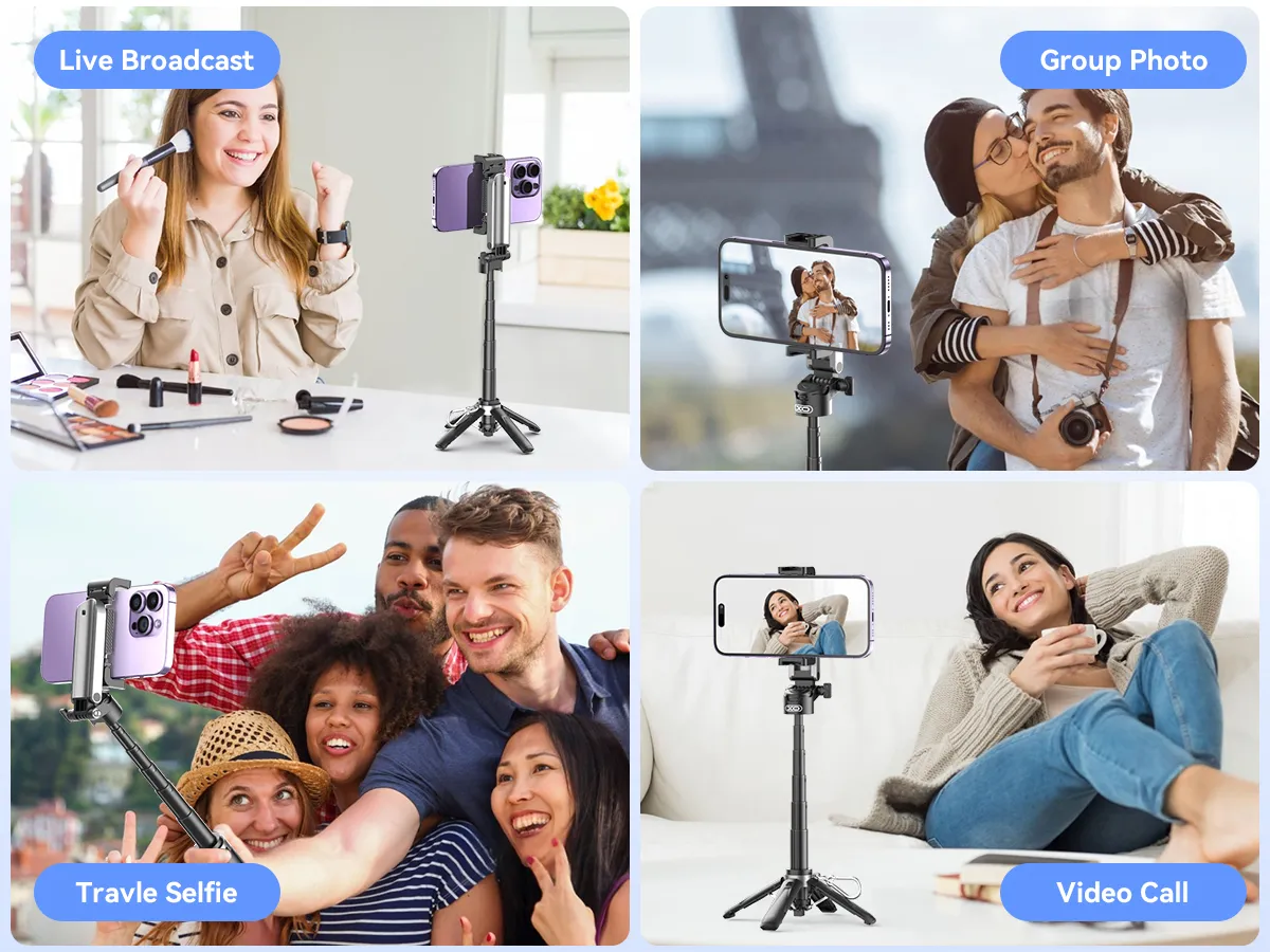 Đây không chỉ là một chiếc gậy selfie thông thường, mà còn là một studio di động thu nhỏ. Bạn có thể dễ dàng biến hóa thành một chiếc chân máy điện thoại vững vàng, thoải mái chụp ảnh nhóm, quay video hay video call mà không lo rung lắc. Đây là giải pháp tối ưu cho những ai muốn có những nội dung chất lượng cao mà không cần đầu tư quá nhiều vào thiết bị cồng kềnh.
