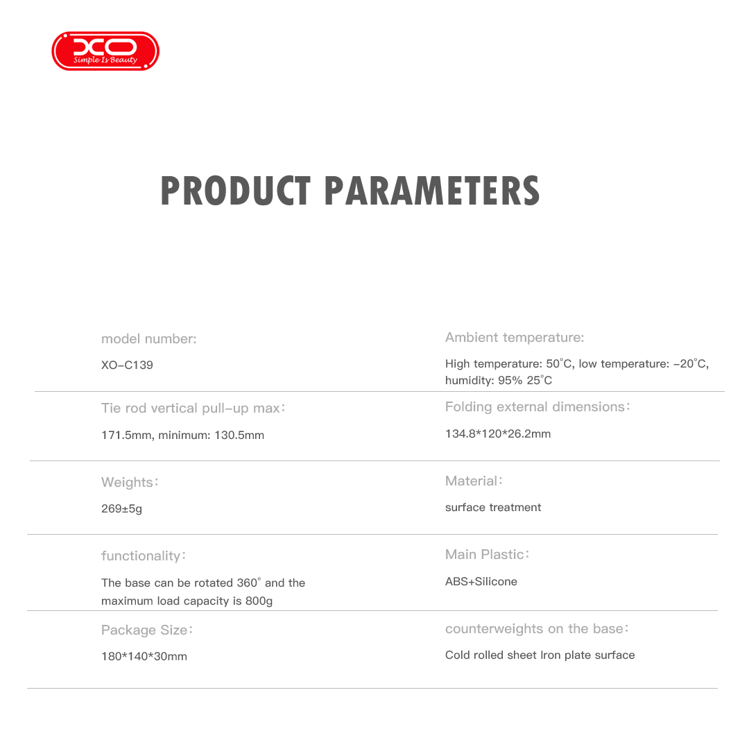 Với khả năng chịu lực lên đến 800 gram, XO C139 đảm bảo giữ chắc thiết bị của bạn ngay cả khi sử dụng ở góc nghiêng 70°. Sản phẩm hoạt động ổn định trong nhiều điều kiện thời tiết khác nhau, từ nhiệt độ cao đến thấp, giúp bạn yên tâm sử dụng lâu dài.