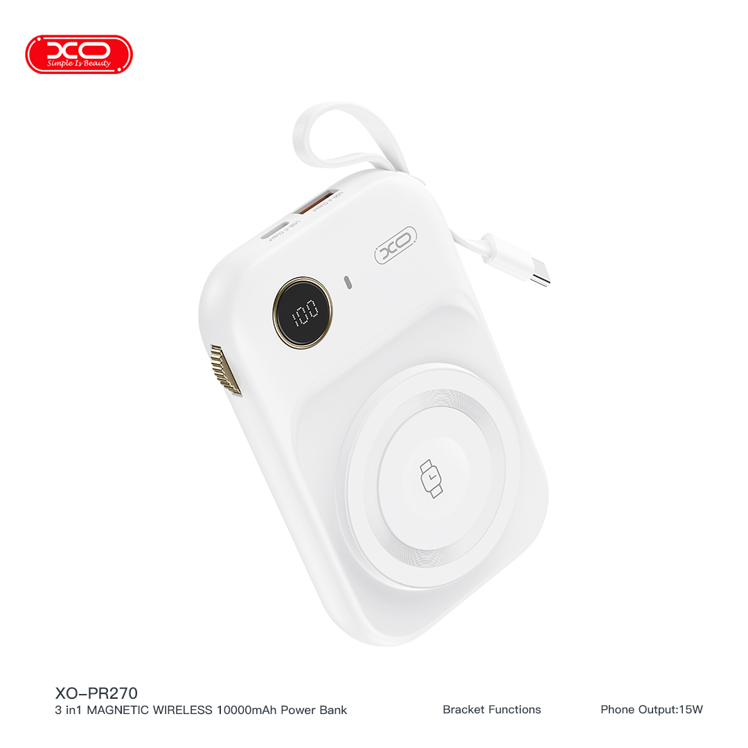 Sạc dự phòng không dây XO PR270 - 10.000mAh, sạc nhanh đa năng 3 trong 1