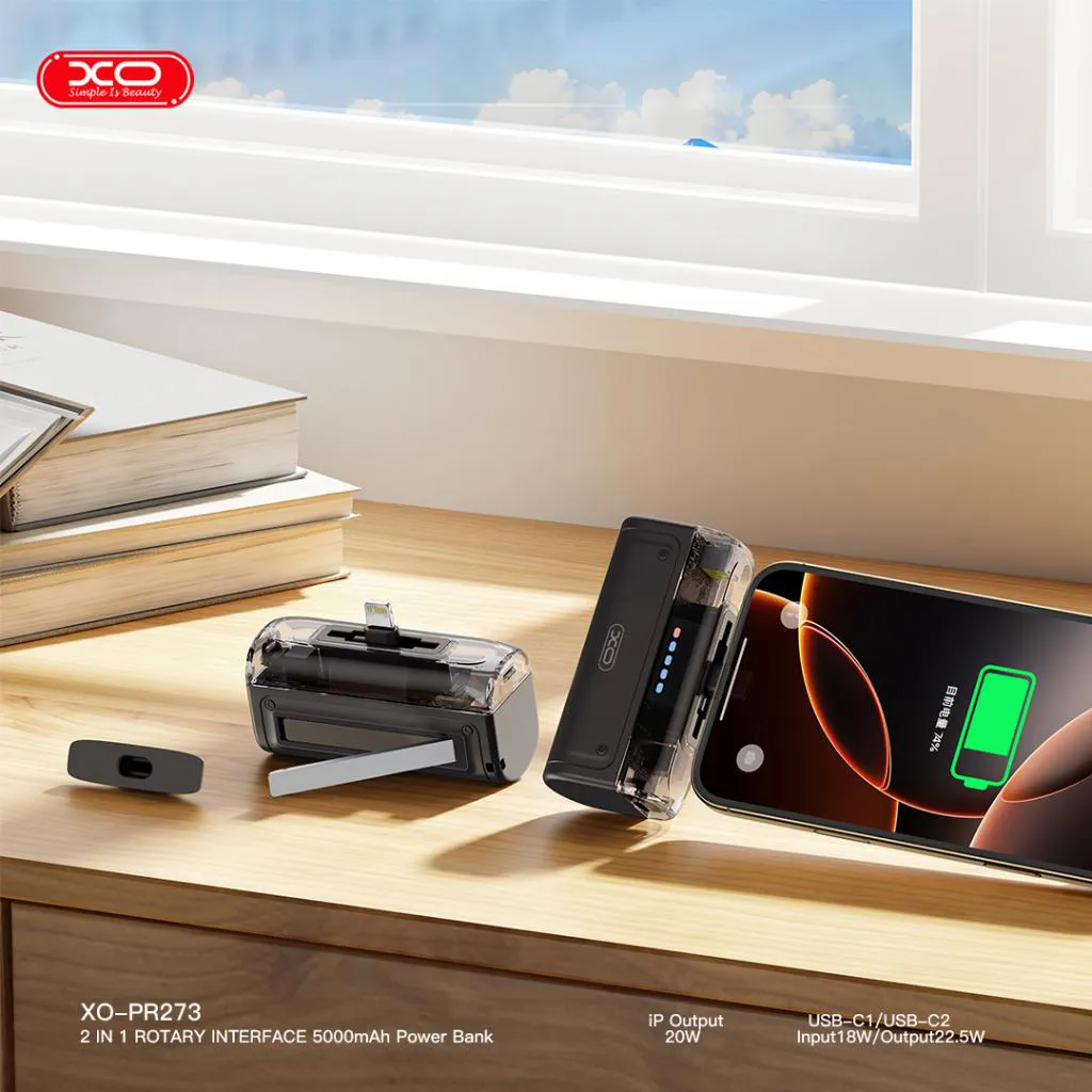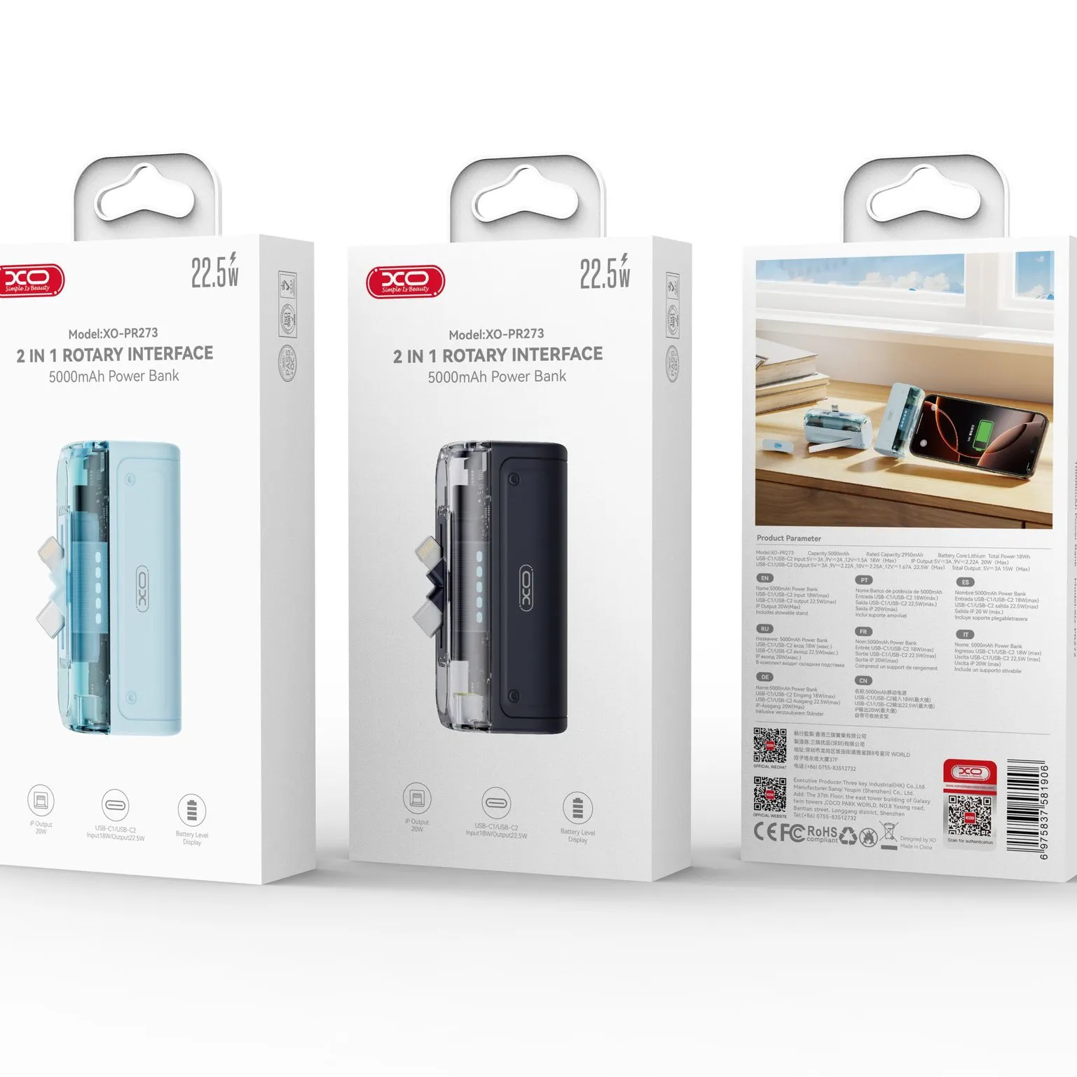 Sạc dự phòng XO PR273 - 5.000mAh, sạc nhanh 22.5W, kèm cổng iOS & Type-C