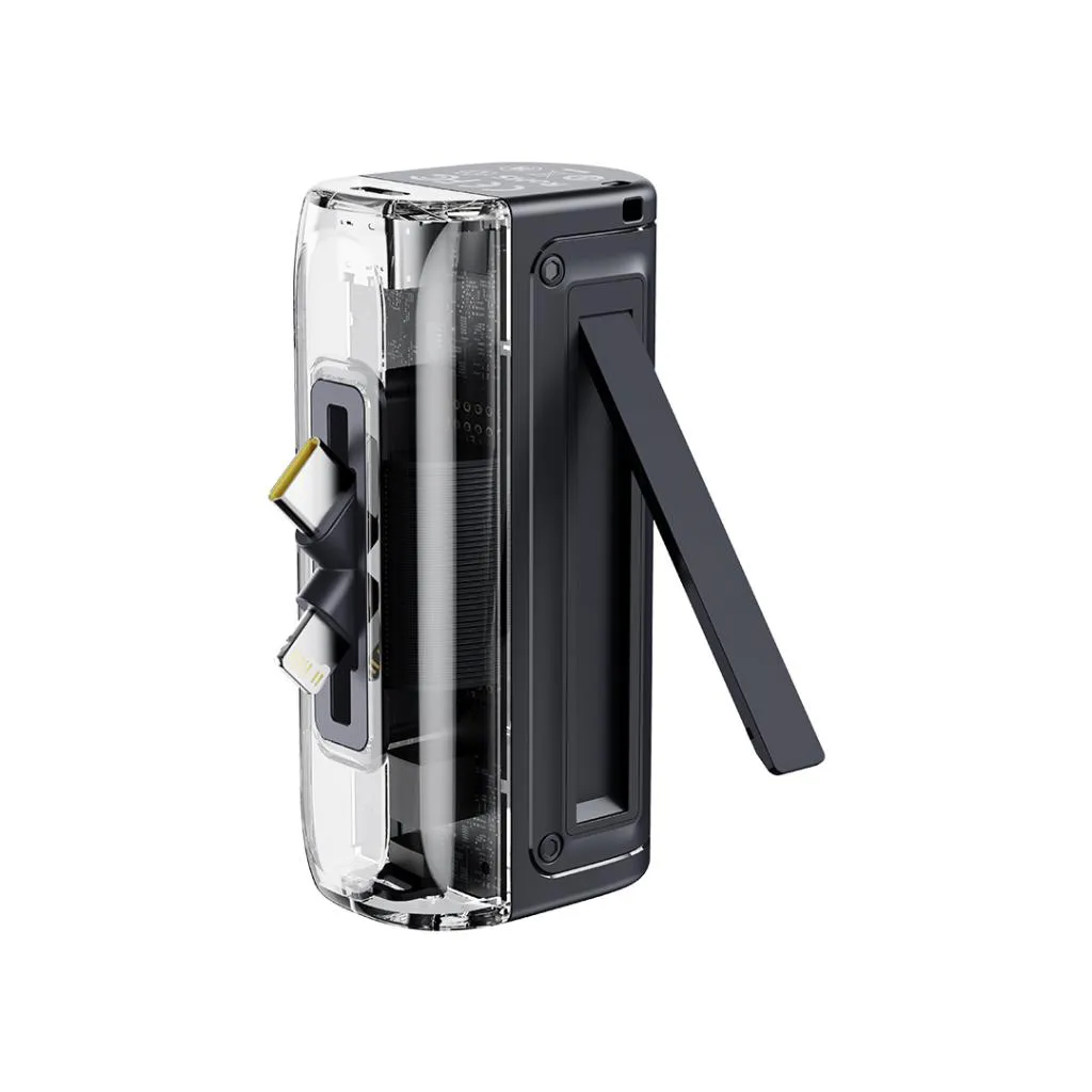 Với dung lượng 5.000mAh, chiếc sạc dự phòng này là người bạn đồng hành hoàn hảo cho những ngày dài di chuyển. Điểm đặc biệt nhất của sản phẩm chính là hai loại dây sạc phổ biến nhất hiện nay: một dây cáp Lightning cho iOS và một dây cáp Type-C được tích hợp sẵn. Bạn không cần phải mang theo bất kỳ dây cáp rời nào, chỉ cần cắm trực tiếp vào điện thoại là có thể sạc nhanh chóng và tiện lợi.