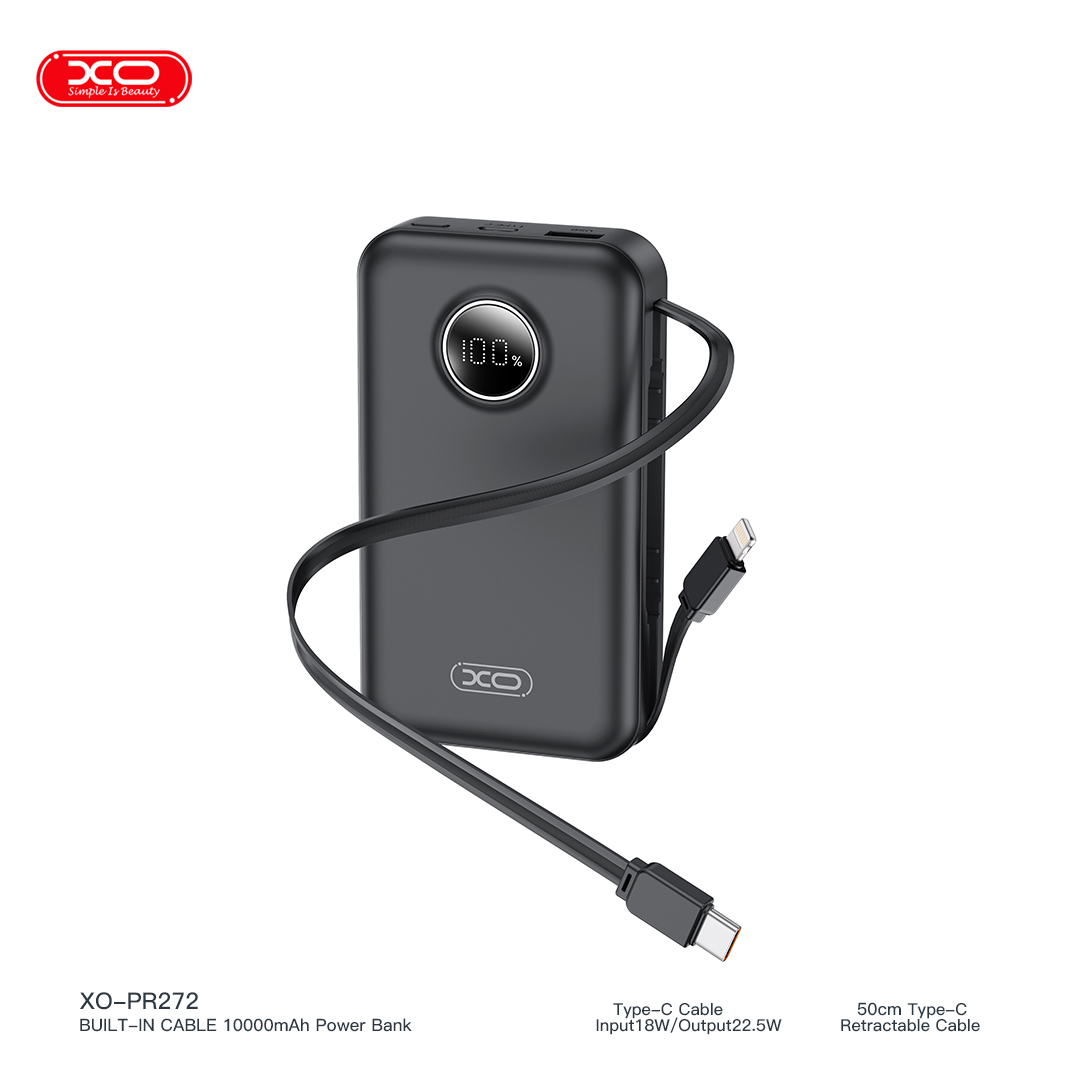 Với thiết kế nhỏ gọn nhưng mang trong mình sức mạnh đáng nể, sạc dự phòng XO PR272 không chỉ là một viên pin dự phòng 10000mAh 22.5W thông thường. Điểm khác biệt ăn tiền nhất chính là hệ thống cáp sạc được tích hợp sẵn gồm cổng Type C và iPhone. Bạn sẽ không còn phải lo lắng về việc quên dây sạc ở nhà hay dây bị rối trong túi xách. Đặc biệt, sản phẩm còn trang bị đèn LED siêu sáng, biến chiếc pin dự phòng thành một nguồn sáng tin cậy trong những chuyến cắm trại đêm hoặc khi mất điện đột ngột.