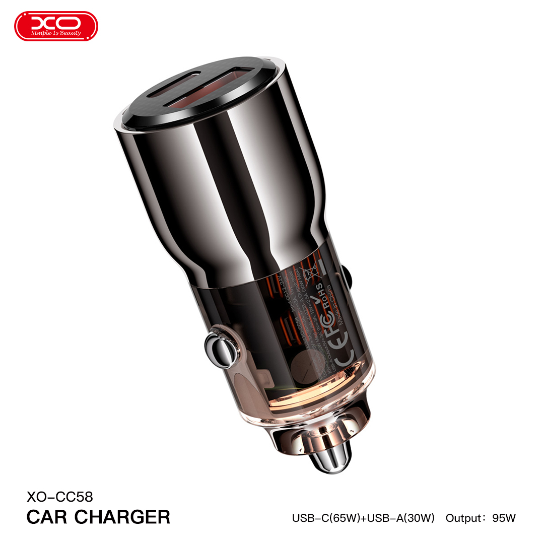 Đầu Sạc Ô Tô Trong Suốt 2 Cổng 95W (Type C/USB) XO CC58 – Sức Mạnh Tối Ưu Cho Mọi Hành Trình